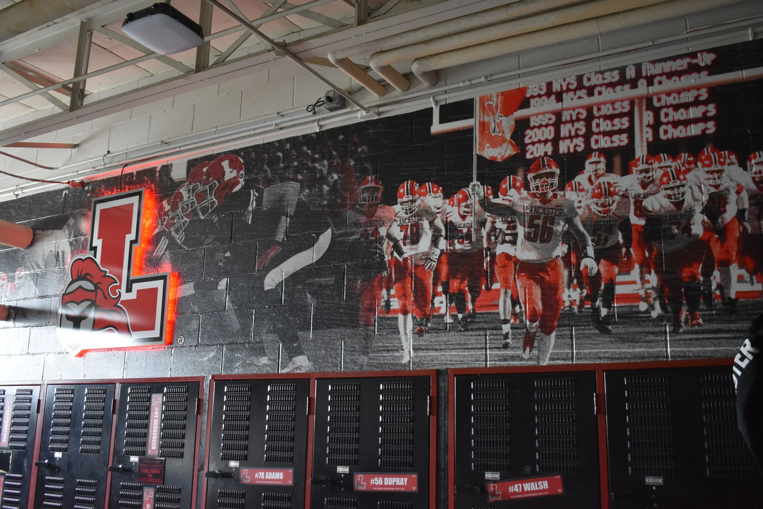 VSP Graphic Group helped Lancaster High School Football transform their locker room with a combination of vinyl graphics and dimensional logos.  The graphics provide messaging, inspiration, pride and school spirit.